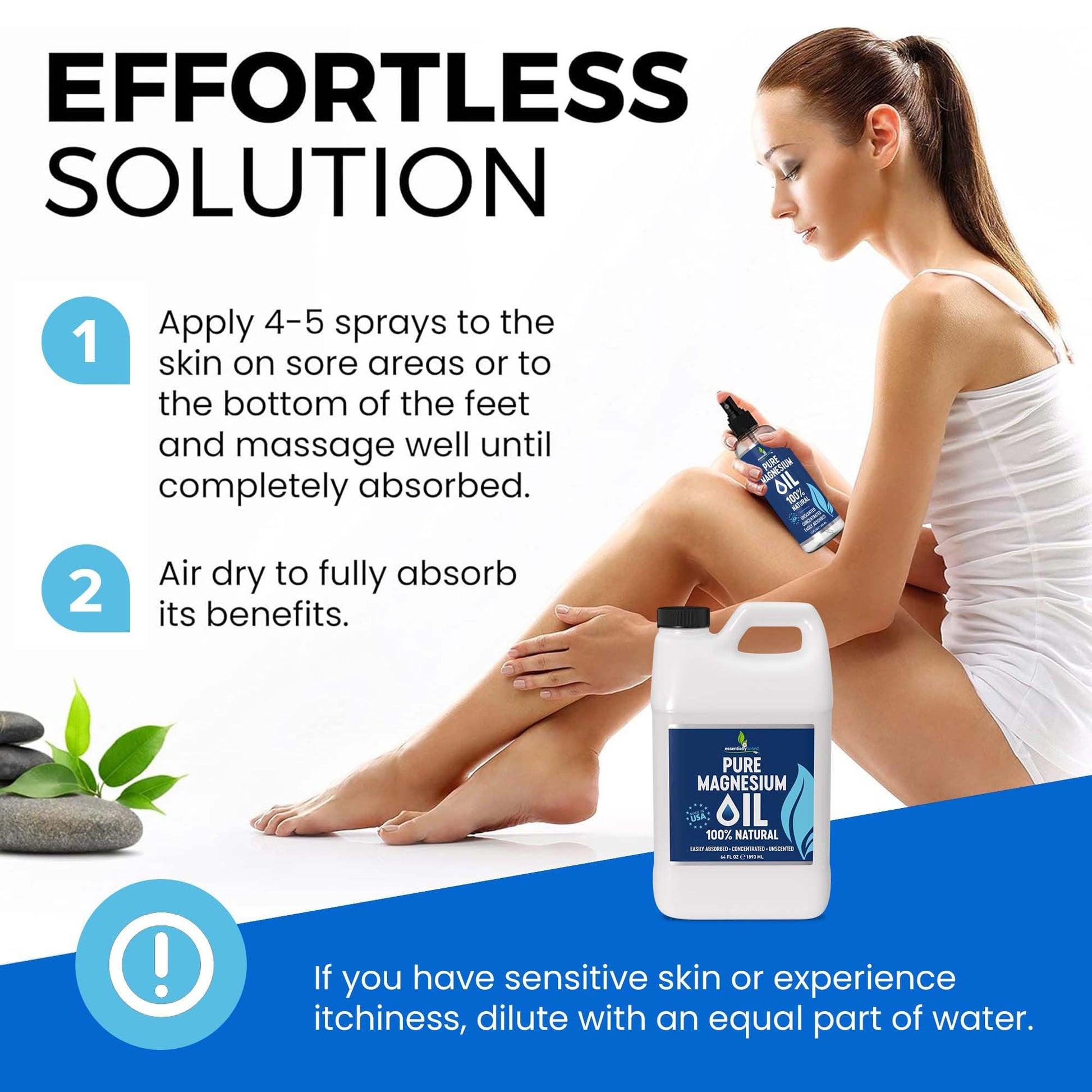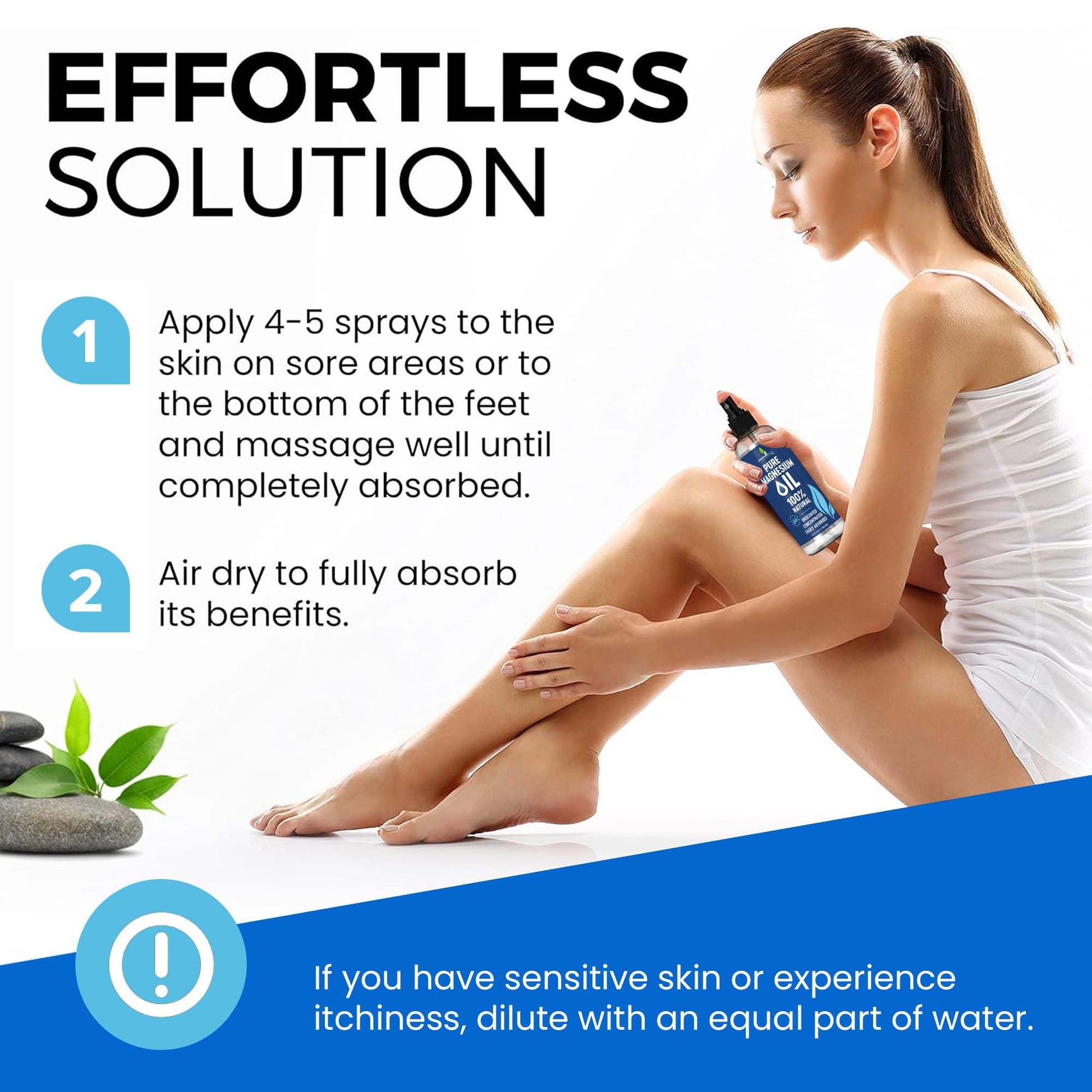 - Our Pure Magnesium Oil Spray offers targeted relief from physical discomfort—including muscular tension, headaches, leg cramps, and menstrual pain—while gently conditioning your body for quality sleep. This premium transdermal solution bypasses digestion entirely, delivering magnesium in its most potent ionic form directly into your cellular matrix for immediate bioavailability. Addressing the widespread magnesium deficiency affecting the majority of adults, this concentrated 8oz formula supports essential metabolic processes and protein synthesis. The topical application extends beyond rest support, enhancing the vitality of skin, hair, nails, teeth, and gums while promoting optimal organ function. Our refined, low-irritation formulation ensures seamless integration into your wellness regimen.